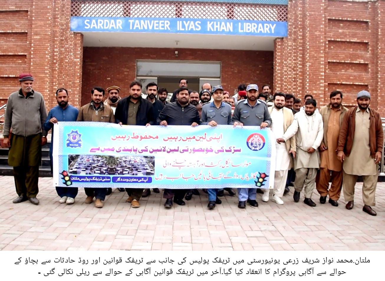 ملتان۔محمد نواز شریف زرعی یونیورسٹی میں ٹریفک پولیس کی جانب سے ٹریفک قوانین اور روڈ حادثات سے بچاؤ کے حوالے سے آگاہی سیشن کا انعقاد کیا گیا۔آگاہی سیشن میں ڈرائیوروں اور کنڈکٹرز نے شرکت کی۔جنہیں ٹریفک اشاروں کی پابندی، مقررہ رفتار، ہیلمٹ اور سیٹ بیلٹ کے استعمال سمیت محفوظ ڈرائیونگ کے اصولوں سے آگاہ کیا گیا۔ٹریفک وارڈن سید حیدر کا کہنا تھا کہ ٹریفک قوانین پر عمل درآمد سے نہ صرف حادثات میں کمی لائی جا سکتی ہے، بلکہ قیمتی انسانی جانوں کو بھی محفوظ بنایا جا سکتا ہے۔شرکاء نے اس اقدام کو خوش آئند قرار دیتے ہوئے ٹریفک قوانین پر عمل کرنے کے عزم کا اظہار کیا۔ آخر میں ٹریفک قوانین آگاہی کے حوالے سے ریلی نکالی گئی۔