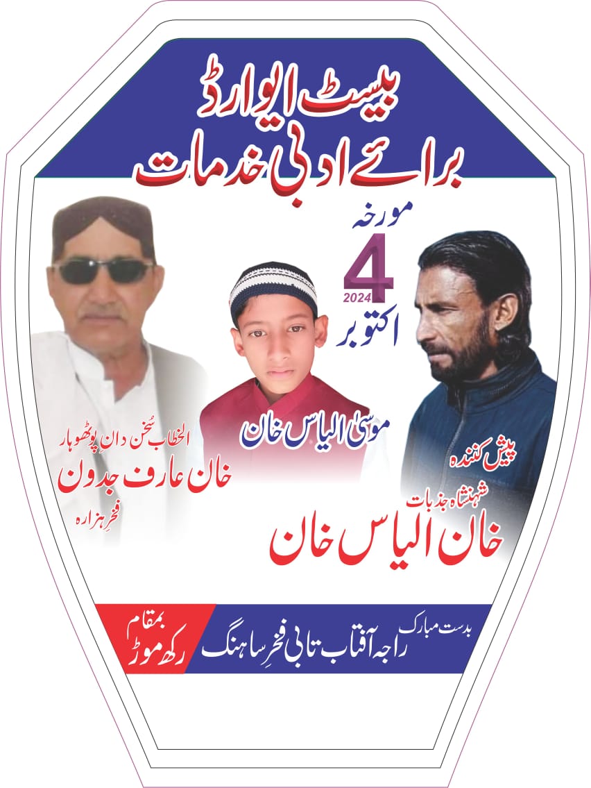 ہری پور(فخرالزمان سرحدی سے)الخطاب سخندان پوٹھوہار عارف خان جدون فخرِ ہزارہ نے 4اکتوبر 2025کو ”بیسٹ ایوارڈ براۓ ادبی خدمات“ حاصل… Continue Read . . .
