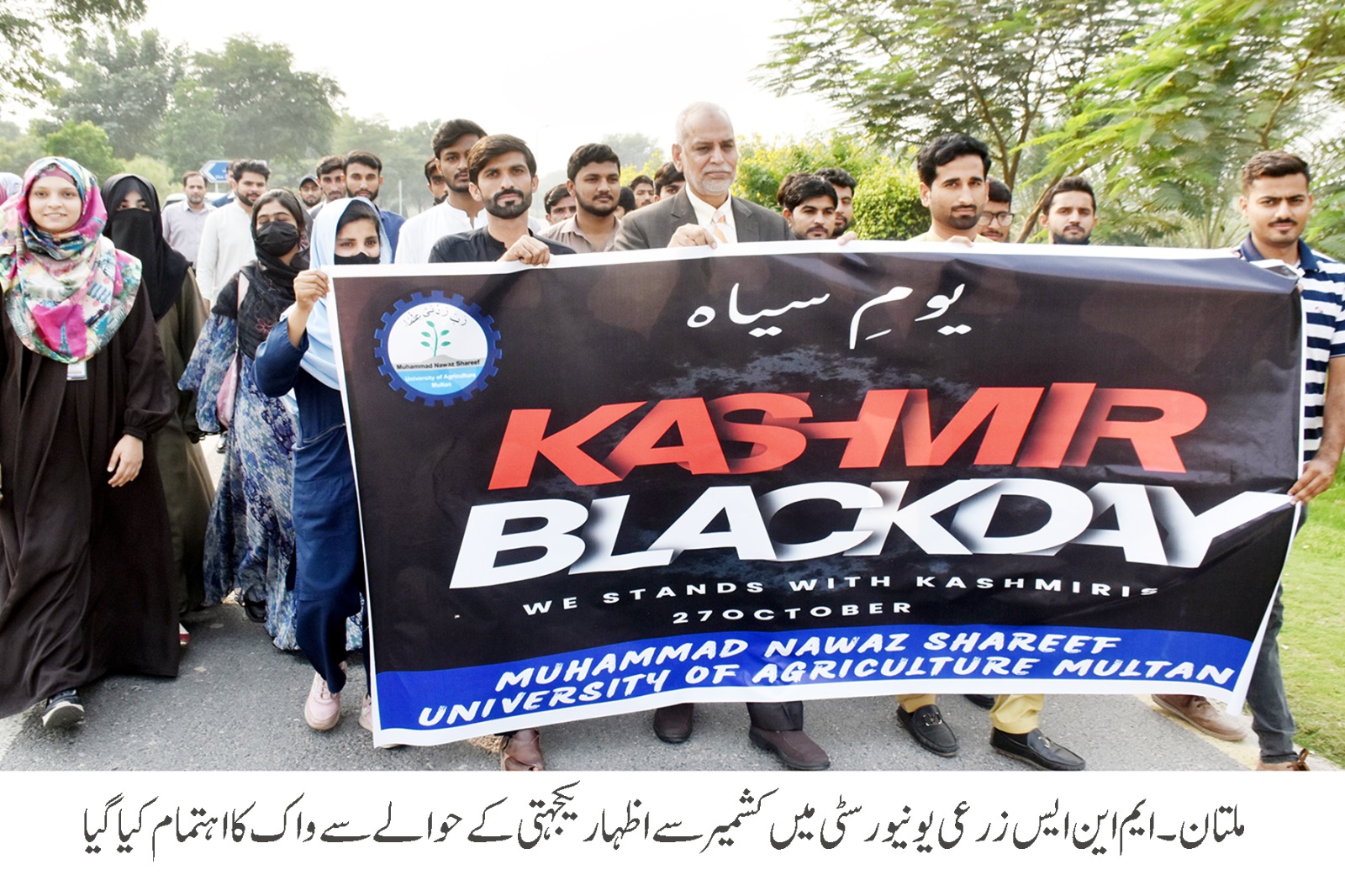 rki.news ایم این ایس زرعی یونیورسٹی ملتان پریس ریلیز 27اکتوبر 2025 ملتان۔ایم این ایس زرعی یونیورسٹی میں کشمیر سے یکجہتی کا اظہار کرنے کے لیے یوم سیاہ منایا گیا۔ وائس چانسلر پروفیسر ڈاکٹر آصف علی (تمغہ امتیا) نے فیکلٹی اور…